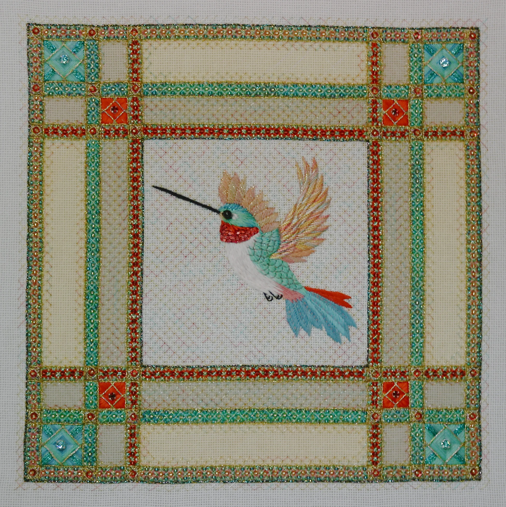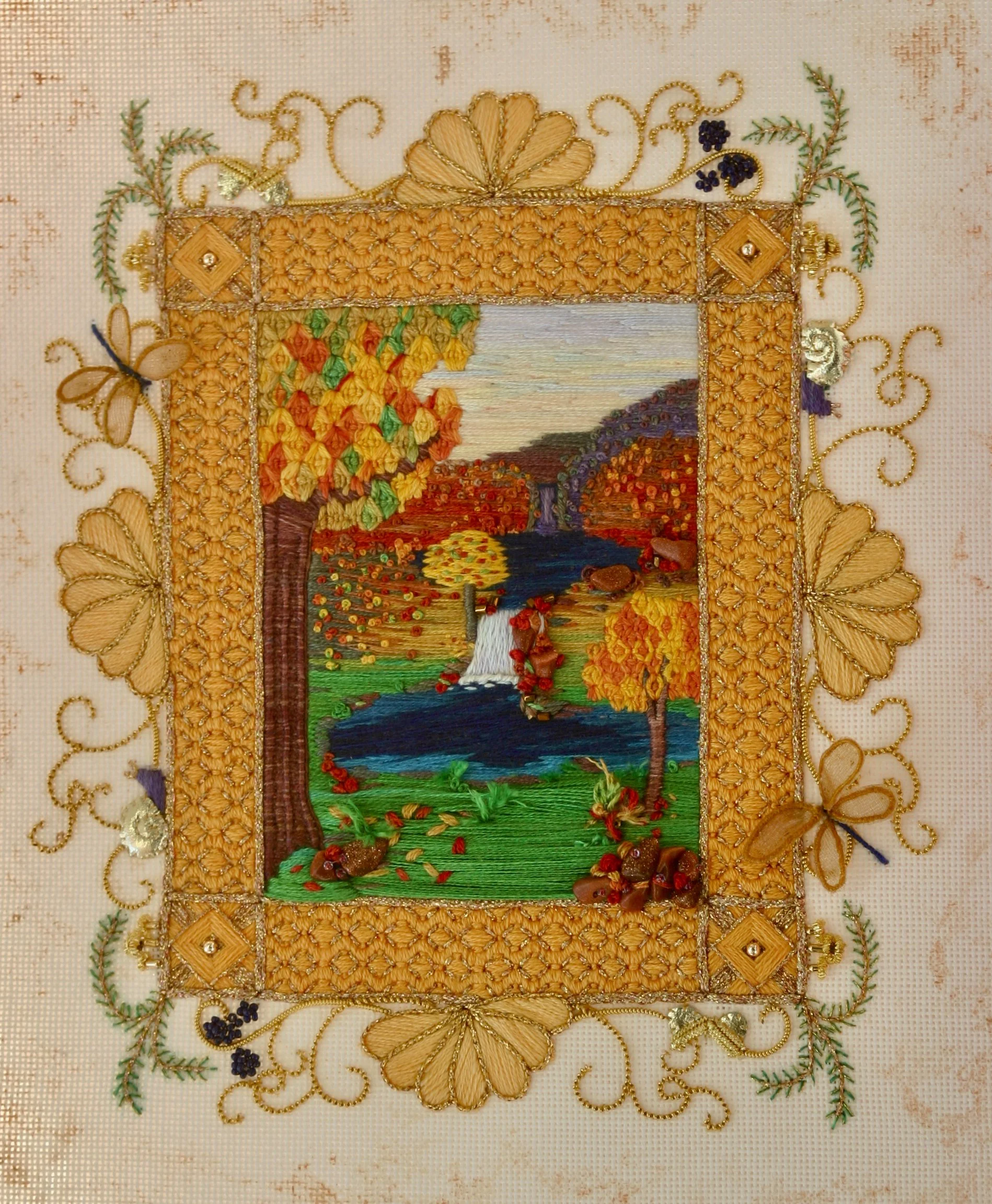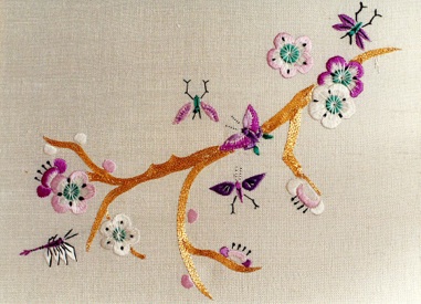 The class will work on 3 separate frames: one silk over linen, 2 organza.
