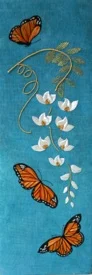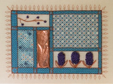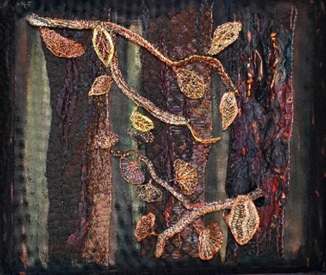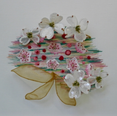 Class Description: The spring breeze in the mountains stirs the flowers of Mountain Laurel and Dogwood. This piece celebrates the layers of blossoms, which are interpreted with multiple tiers of silks and metal as we create an exquisite floral on fabric with cantilevered, detached elements.